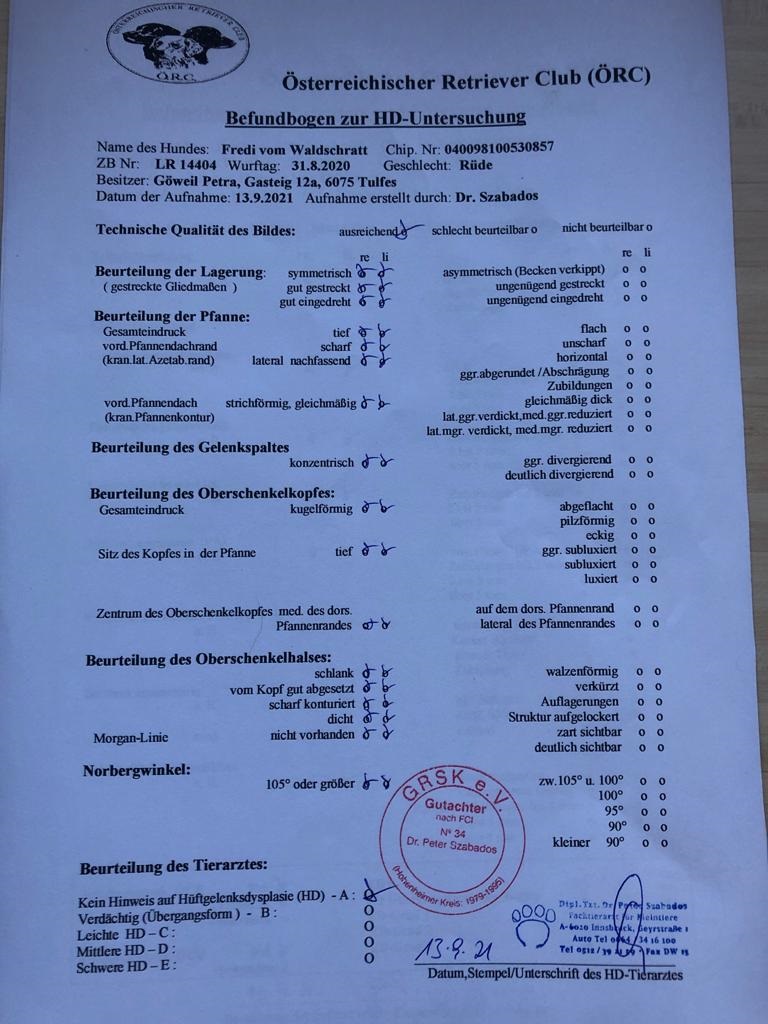 HD-A, ED-0, Augen frei, prcd-PRA/clear, HMLR (CNM) frei,